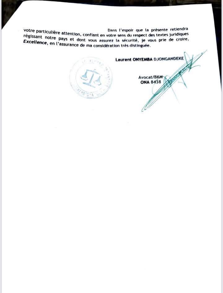 Lettre de l'avocat Laurent Onyemba au Vice-premier ministre, ministre de l'intérieur et sécurité.