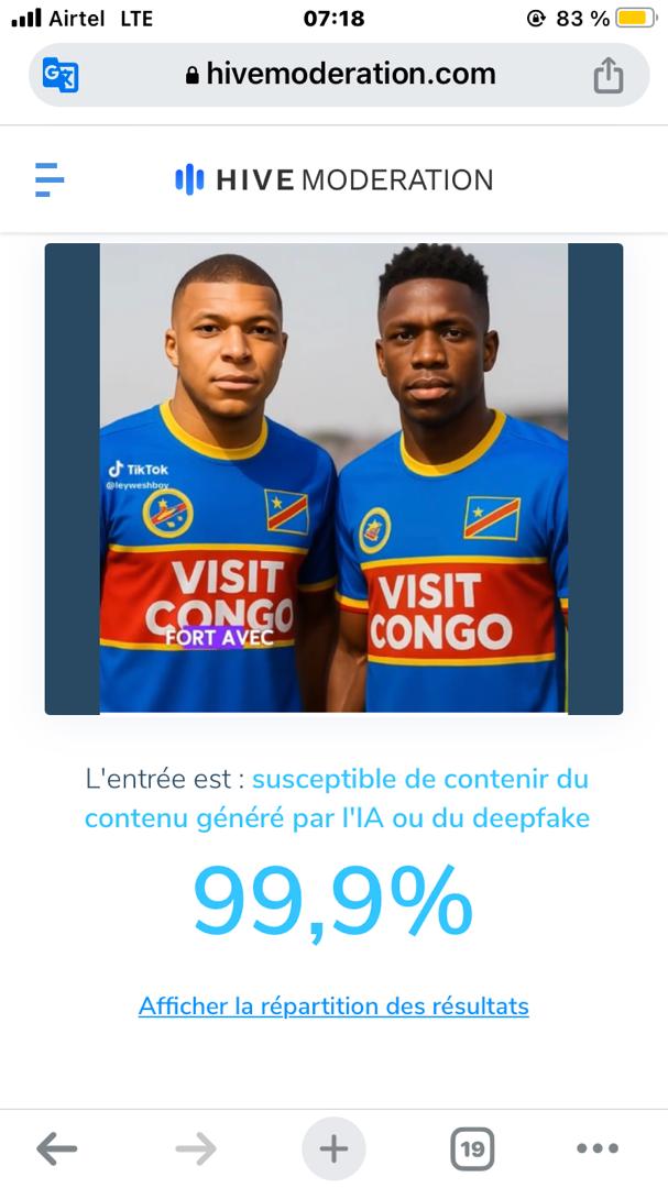 La vidéo dans laquelle nous apercevons les stars du football avec le maillot de la RDC floqué Visit Congo est générée grâce à l’Intelligence artificielle.