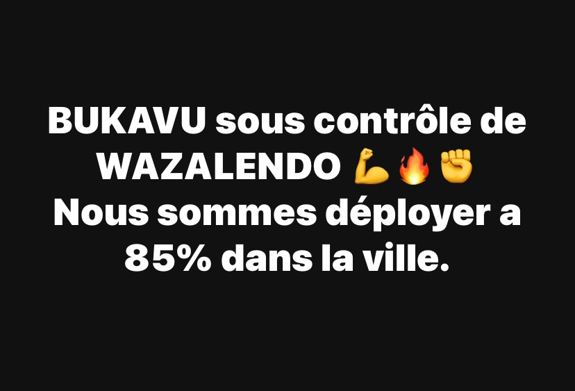 « BUKAVU sous contrôle de WAZALENDO. Nous sommes déployer a 85% dans la ville ».